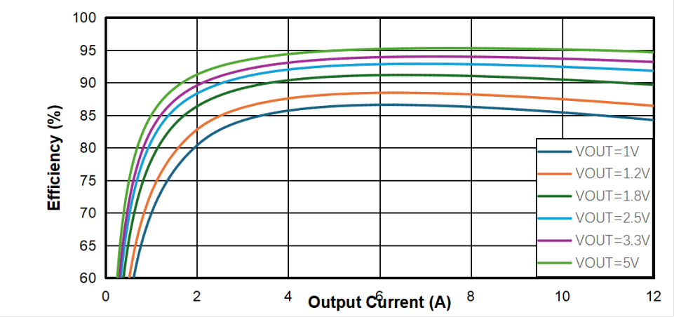 VIN=12V,VOUT=1V~5V,IOUT=3A