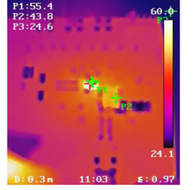 集成低导通阻抗的功率MOSFET和高效的散热设计,让TPP21206在12V转3.3V,满载12A工作时,芯片温升仅30.8℃。对于当下AI服务器等主控芯片算力越来越大的应用情况,尤其是散热冷却问题已愈发成为性能制约的关键因素,TPP21206更高效的散热设计,为客户提供更舒心的电源方案。