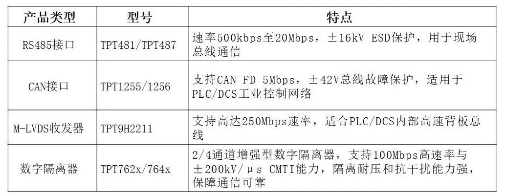 在工业自动化控制领域,可编程逻辑控制器(PLC)与分布式控制系统(DCS)作为核心控制设备,性能与可靠性直接决定了生产系统的稳定与效率。当前,中国PLC市场正稳健增长,新能源、工业机器人等新兴领域快速发展且需求强劲,技术向智能化、开放化、集成化演进,国产替代进程加速。 依托深厚的技术积累与全面的产品布局,思瑞浦可为PLC/DCS系统提供从信号采集、输出控制到电源管理、通信接口的全链路、高性能模拟芯片解决方案,产品已广泛应用于20多余家行业头部厂商,累计出货型号超过320个,成为工业控制领域值得信赖的国产芯片合作伙伴。 模拟输入(AI)方案 精准采集,稳定可靠 在PLC/DCS系统中,模拟量采集是连接现场物理信号与数字控制的核心环节,负责将温度、压力等连续变化的信号精准转换为数字量,其精度直接决定了整个控制系统的调节质量与决策可靠性。在模拟量输入模块上,思瑞浦提供多款高精度ADC和模拟前端芯片,满足±1/2/5/10V电压信号、±20mA,4~20mA电流信号场景下的输入信号采集需求。 TPAFE5173一款高精度16位、500kSPS的8通道ADC ,增益误差温漂仅1ppm/℃;输入最大支持±12.288V,内置 ±30 V钳位保护,单通道过压时不会串扰其他通道,保障系统连续可靠运行;集成了4.096V基准(10 ppm/℃),省去外置基准,简化设计;同时支持断线检测,可快速定位连接故障,提升系统自诊断能力。 TPC517系列包含14/16bit、250k/500k/1MSPS、4/8通道多种ADC,内置基准,配合高精度运放,可实现灵活且低成本的多通道电压/电流采集。 在PLC/DCS系统中,温度是过程控制的关键参数,无论是化工合成、冶金热处理还是能源监控,精确的温度采集都是保障工艺流程稳定、提升产品质量、降低能耗的核心环节。针对RTD和热电偶测温需求,思瑞浦推出TPC6240高精度测温方案,24bit、8kSPS、Σ-ΔADC,支持8ch差分/16ch单端输入,集成PGA、IDAC、内置基准,支持2/3/4wire RTD和热电偶TC测温,配置灵活。 模拟输出(AO)方案 灵活输出,高效控制 在PLC/DCS控制系统中,模拟输出(AO)是将数字指令转化为物理动作的执行层,直接驱动调节阀、变频器等执行机构,实现压力、流量、转速等参数的精确调节。其输出精度与响应速度决定了工艺回路的控制品质,是保障生产高效稳定运行的关键环节。在模拟输出模块中,思瑞浦提供从分立到集成、单通道到多通道、电压到电流输出的完整DAC解决方案,满足不同系统架构需求。 0~24mA输出+动态功率调整 ±12.5V输出+上电零输出 TPC2884是高集成度的模拟输出方案,4通道16位DAC在常温下配合内置基准无需校准即可达到0.1%FSR精度;支持电流与电压共端子输出,简化现场接线与配置;内置ADC可回采 IOUT、VOUT 及 AVDD,实现对输出信号的实时监控,有效提升系统安全性与可控性。 TPC2884具备65V电源耐压与±50V端口耐压,可从容应对工业现场接线错误或瞬态过压,显著增强系统鲁棒性。同时优化了上下电过程中的输出过冲,避免在系统启停时对执行器造成误动作,保障设备运行可靠。 TPC2201是一款完全集成的高精度电压电流输出16位DAC。电流输出覆盖4–20mA、0–24mA等工业标准范围,常温精度0.06%FSR;电压输出支持0–10V、±10V等范围并带10%过量程,常温精度0.07%FSR。芯片集成4ppm/℃ 基准源与LDO,简化外部电源设计;内置多种报警与保护功能,并支持菊花链SPI通信,便于多通道级联扩展,适用于对精度与可靠性要求严苛的工业控制场景。 数字输出(DO)方案 高边/低边驱动,灵活可靠 数字输出(DO)在PLC/DCS系统中是控制系统的执行末端,将逻辑运算结果转换为开关信号,直接驱动继电器、电磁阀、指示灯等负载,实现设备的启停与状态控制,其可靠性与驱动能力直接影响系统动作的准确性与安全性。思瑞浦提供全系列高边开关和低边驱动器,适用于继电器、电磁阀等负载驱动。 TPM8866/TPM8803是思瑞浦面向工业驱动市场推出的智能低边驱动器,可支持8ch/4ch输出,1.5A/3A电流,最大工作耐压40V,支持短路电流保护和开路保护。 TPS42S40Q/TPS42Q20Q是思瑞浦推出的单/四通道高边开关,最大40V工作电压,4A/2A每路驱动能力,支持电流检测和多种故障检测及保护功能。 电源管理方案 高效安全,稳定供电 思瑞浦拥有丰富的电源管理产品组合,涵盖降压、升压转换器,反激控制器,低功耗LDO,为系统提供高效、稳定的供电与电源路径管理。 接口方案 种类丰富,通信可靠 思瑞浦接口产品以品类丰富、高ESD能力为特色,具备强抗干扰能力与宽温工作特性,确保数据在严苛环境中可靠传输。 PLC/DCS作为工业控制领域的核心中枢,是思瑞浦长期深耕与战略投入的重点市场。未来,公司将持续推出更多符合市场需求、更具竞争力的产品,为客户打造覆盖信号链、电源管理的一站式模拟芯片解决方案,并配以专业化技术支持与本土化服务。助力客户构建更精准、更可靠、更高效的工业控制系统,以应对产业升级与国产化浪潮中的关键需求,为行业高质量发展持续赋能。 瑞彩电子可提供样品及技术资源,如有需要可联系瑞彩电子当地销售网点申请或公众号后台留言,也可邮件至reeacm@reecam.net。